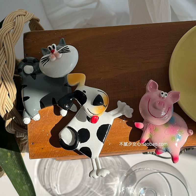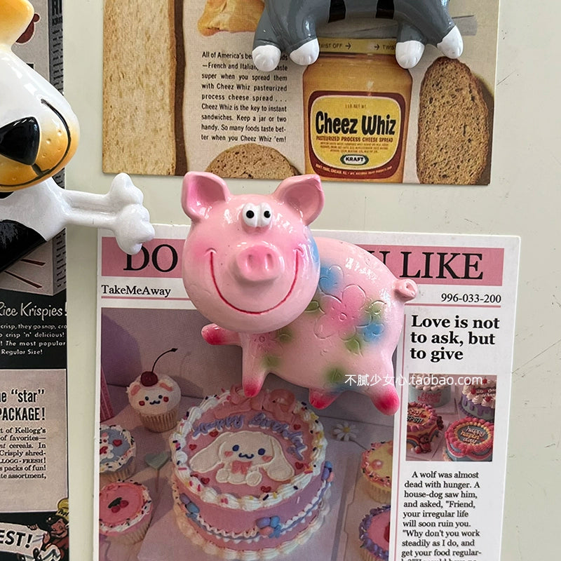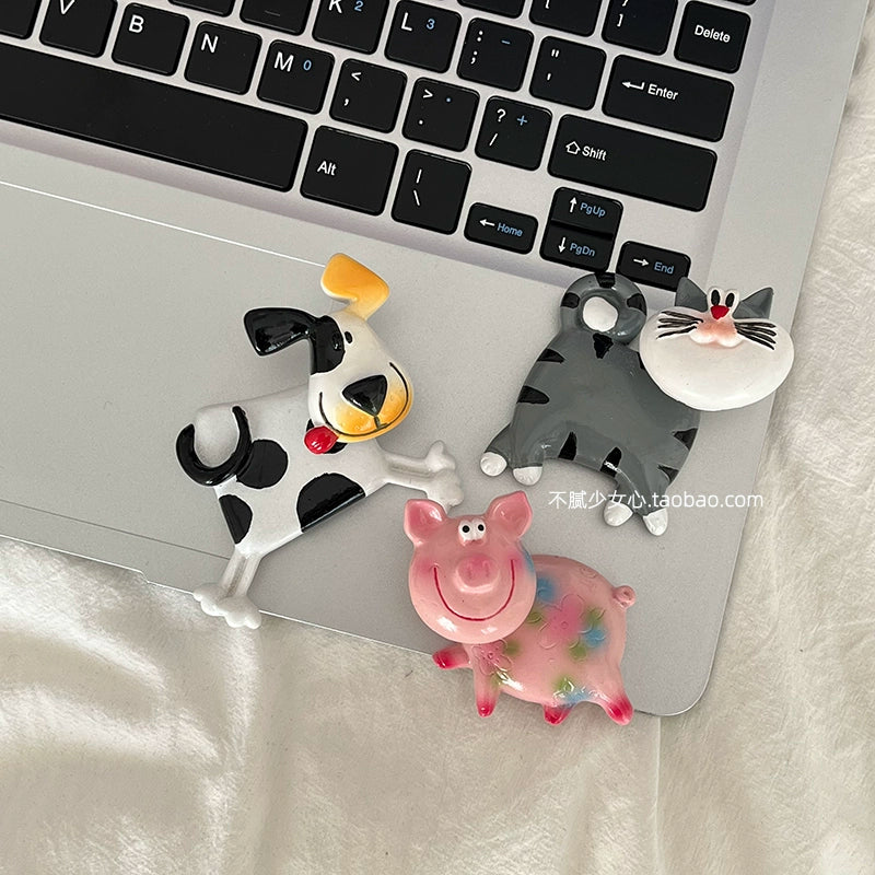 [3 free shipping] Cartoon spring shaking head animal piggy kitten, cow, resin refrigerator sticker