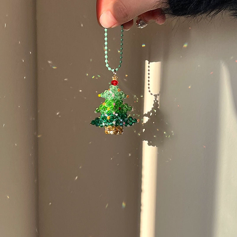 A Christmas tree! Original cute handmade beaded book bag pendant keychain bell pendant ins gift