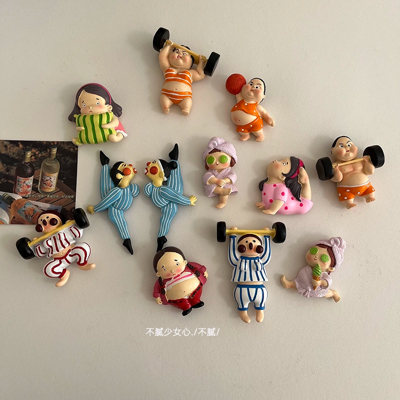 Not tired of girl's heart, weightlifting refrigerator sticker merchandise tile ins wind personality creative 3d three-dimensional cute fitness clay